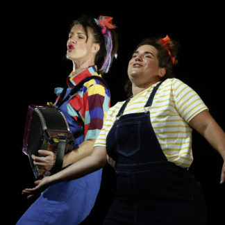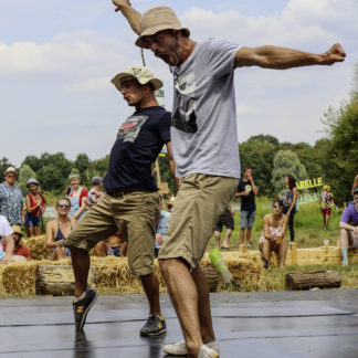 Déambulation avec les élèves de l’école de cirque, proposant diverses prouesses acrobatiques et comiques pendant la parade.