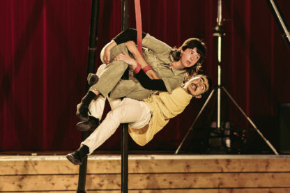 Deux acrobates apprennent à se taire pour mieux s’écouter : quand le bruit du monde s’efface, ne reste que le langage du corps. Un cirque poétique, physique et sensible.
